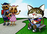 His friends from across the street are brother and sister dogs named Henry and Sophie. Their cousins, Max and Daphne, live on the next block. Another neighbor is Timothy, a younger kitten who greatly admires Mister William. Timothy wants to learn and do everything just like Mister William, but it seems that Mister William will be the one doing the learning.